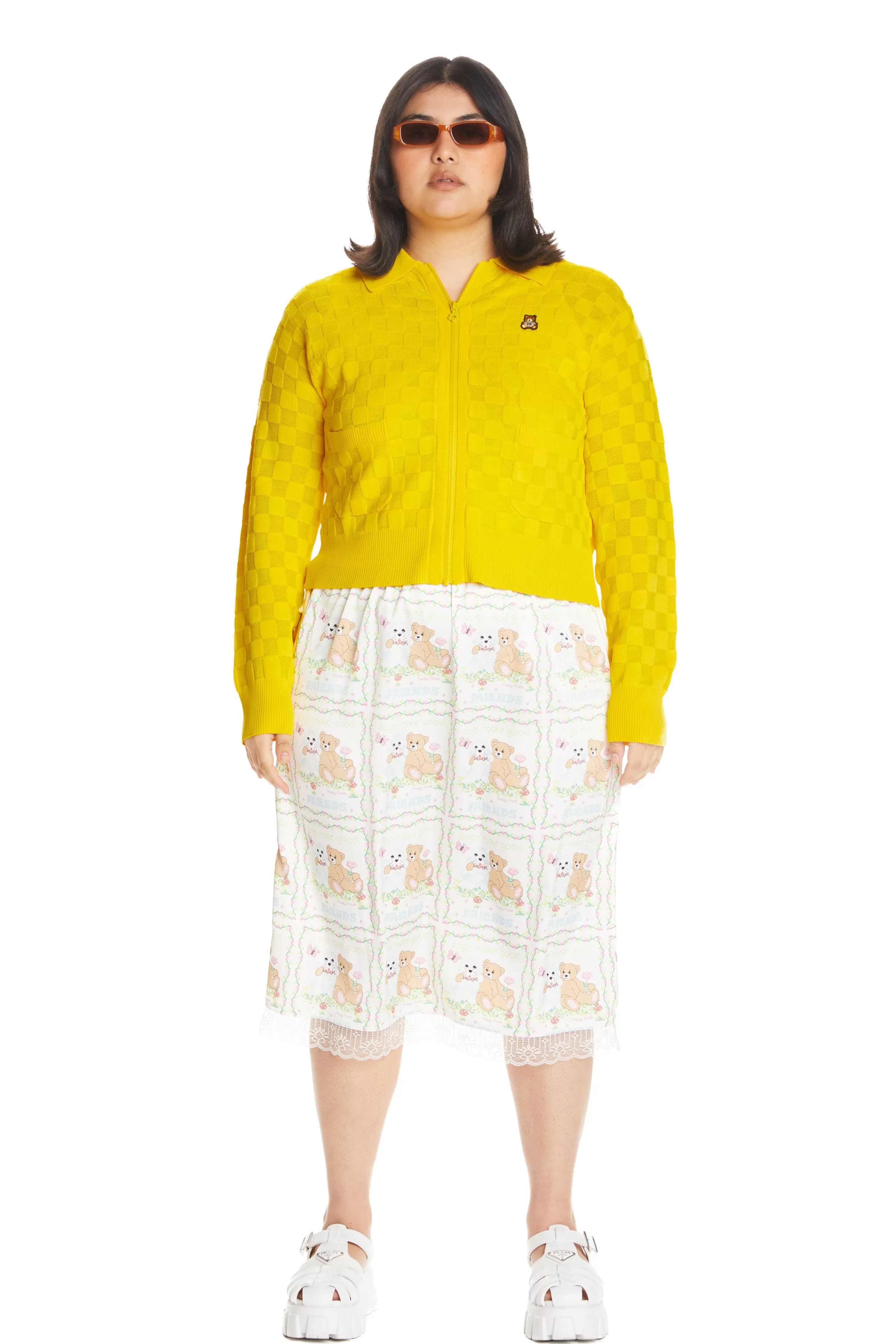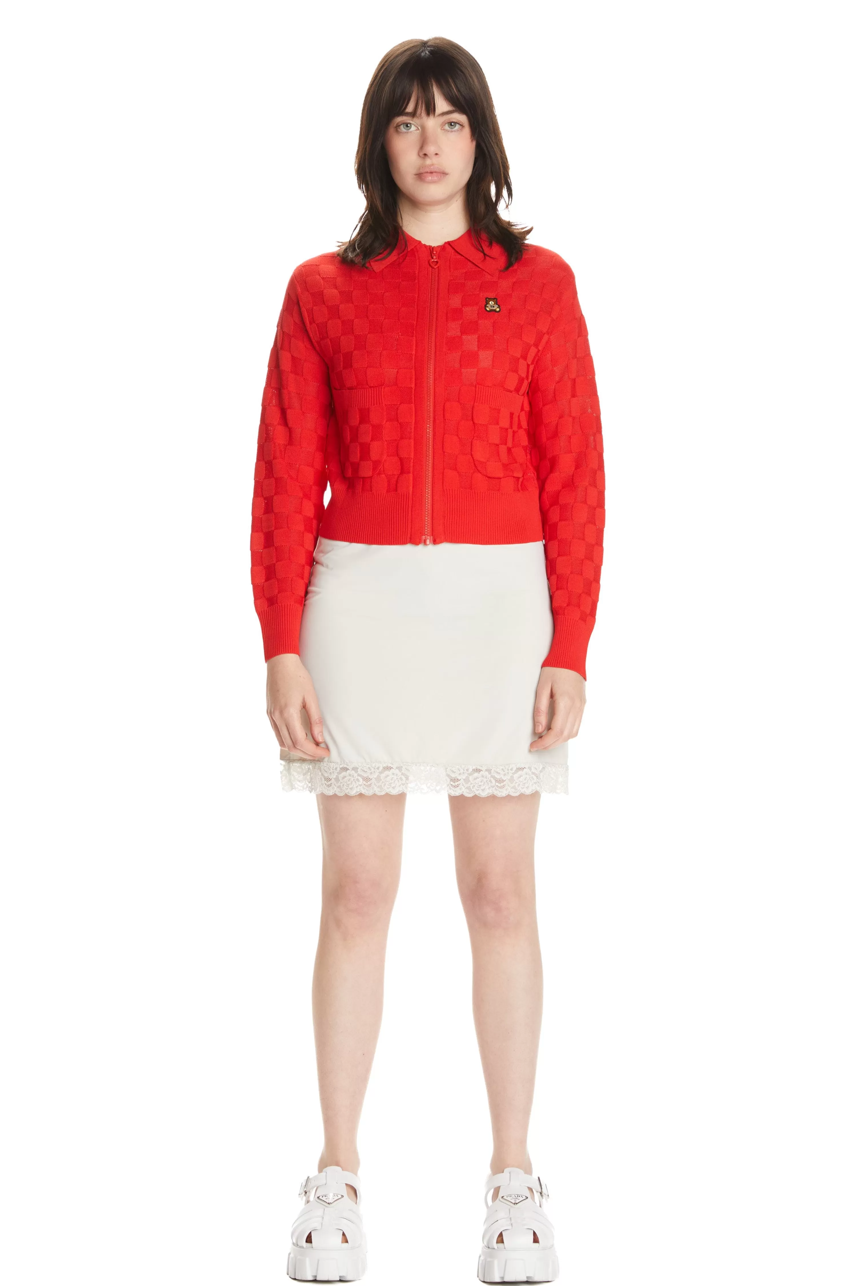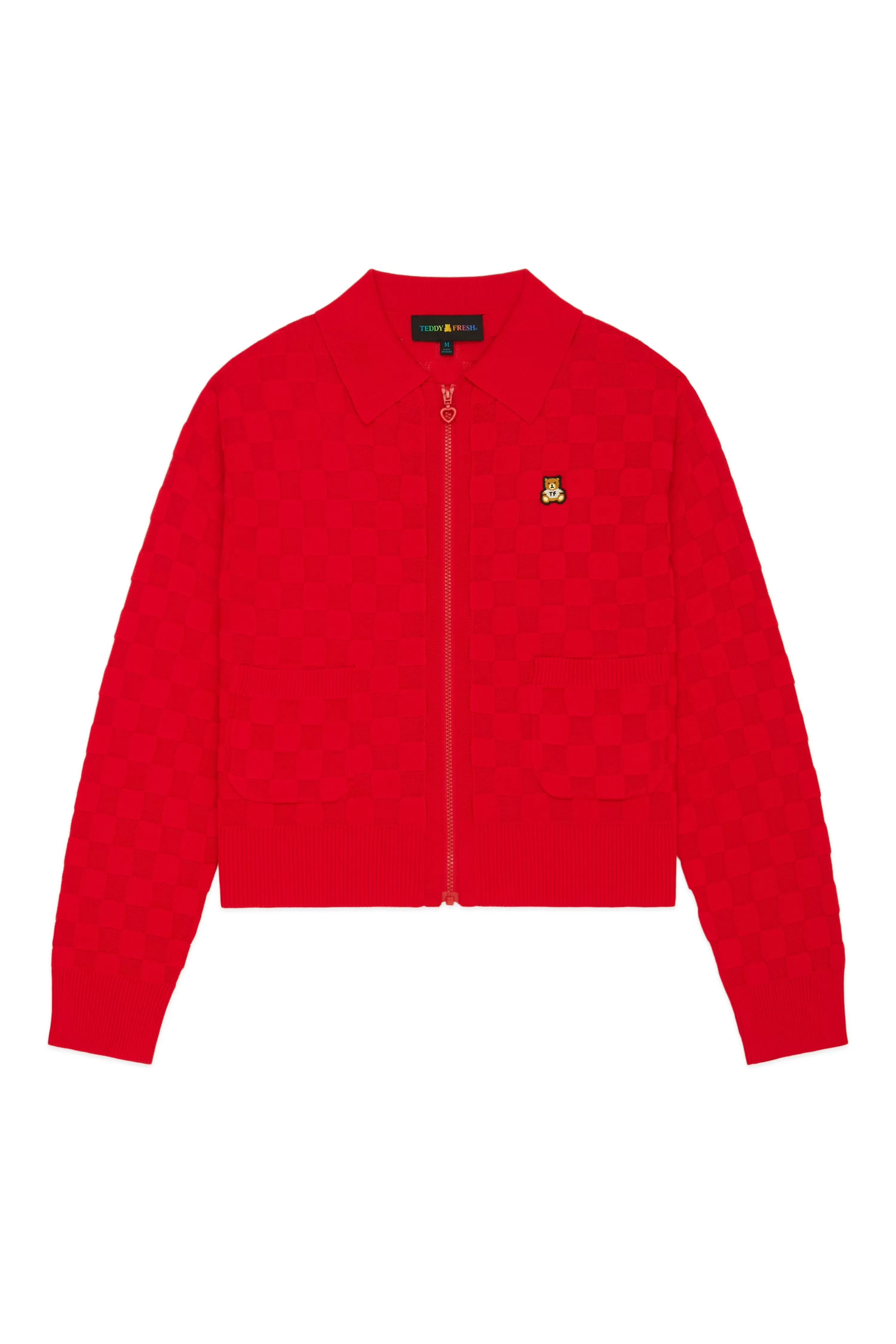 - Checkered zip-up cardigan