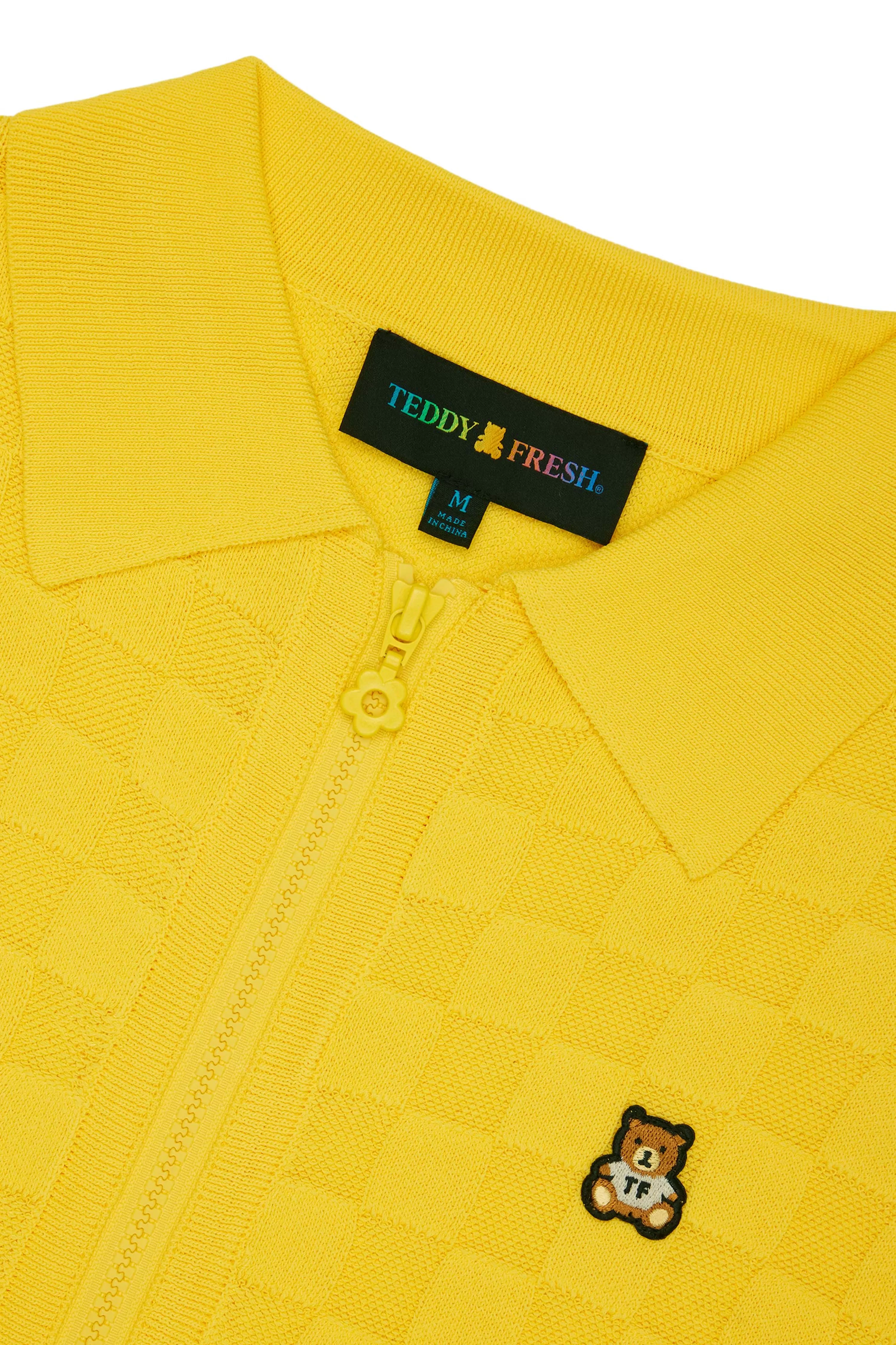 - Yellow colorway: painted enamel flower zipper pull