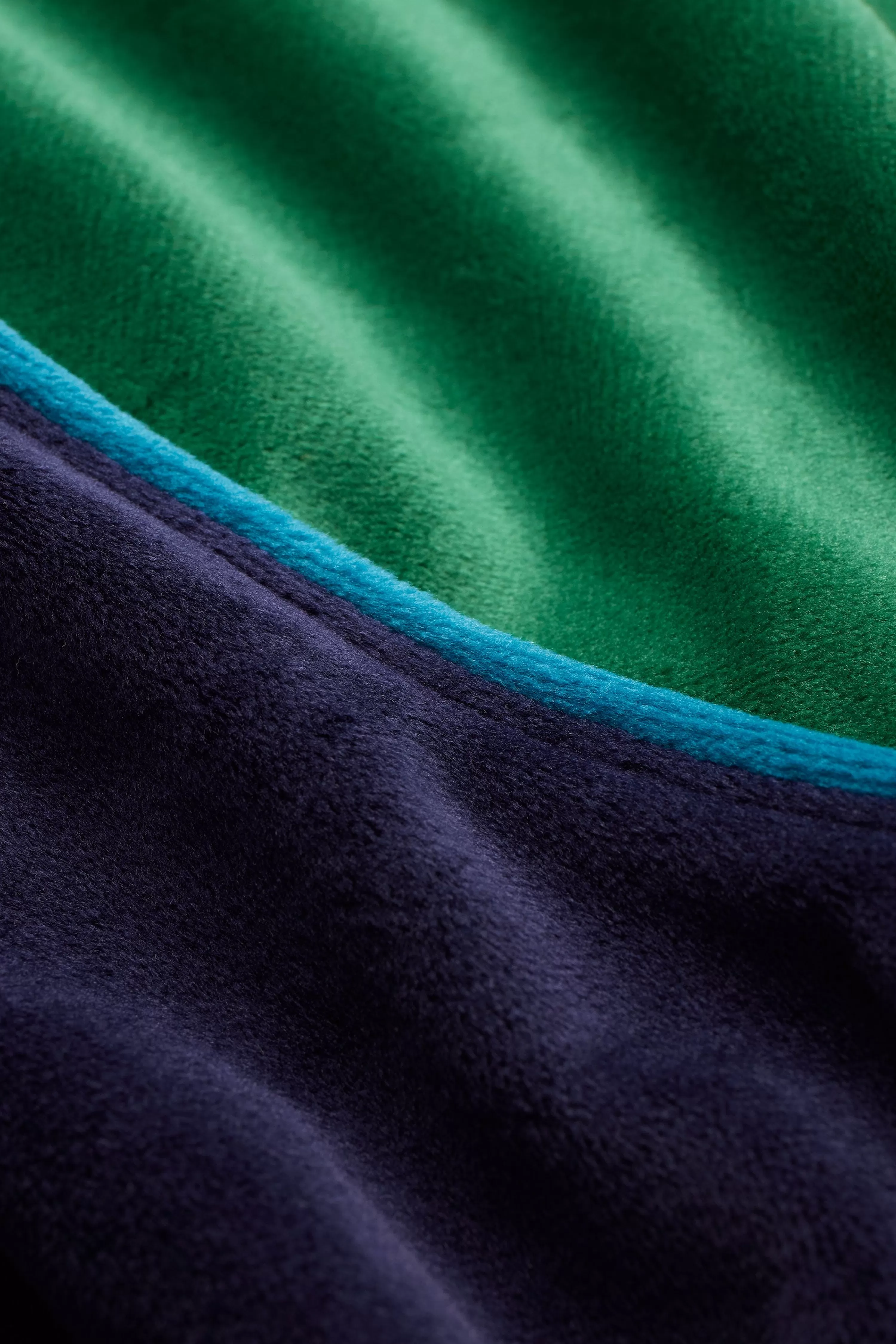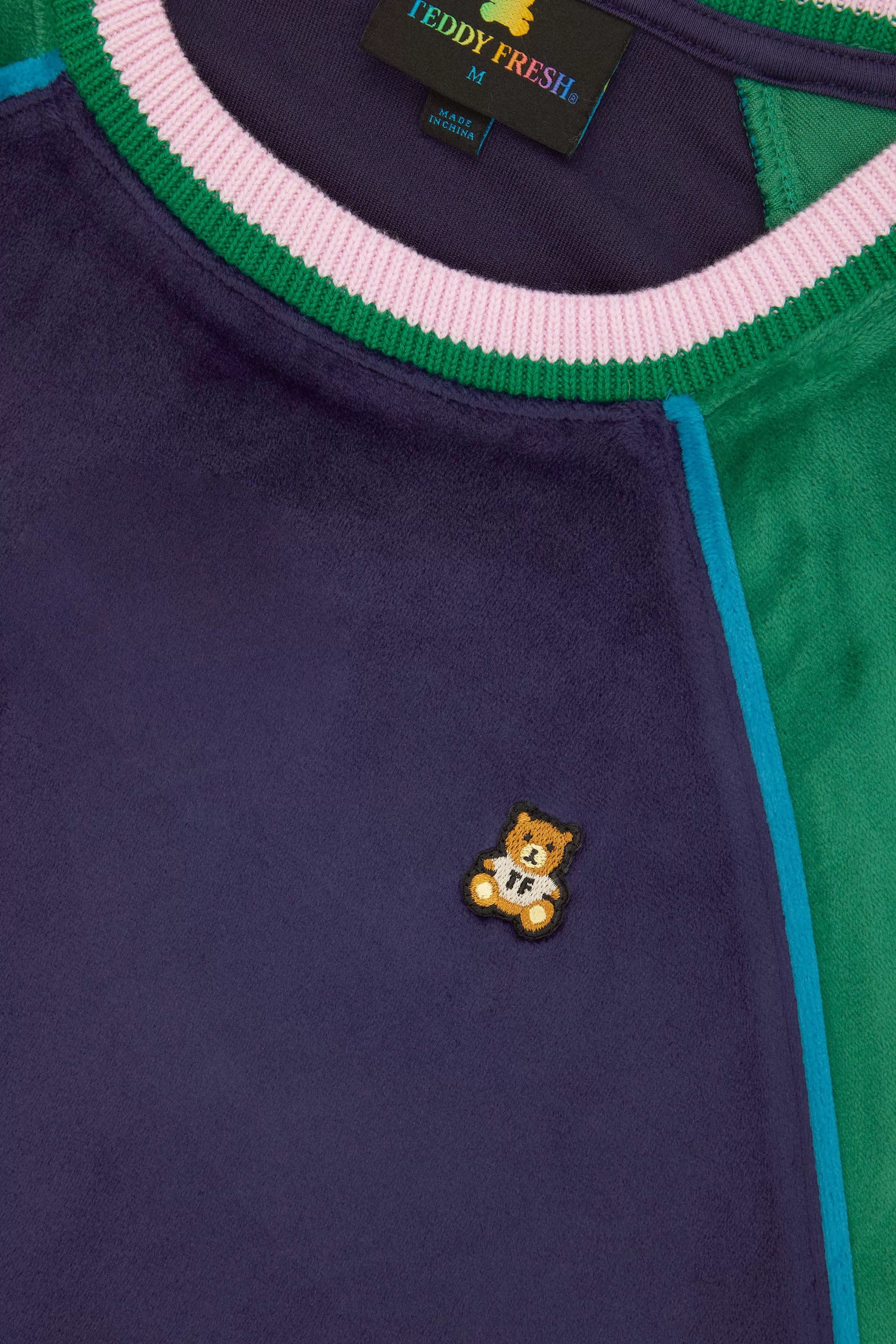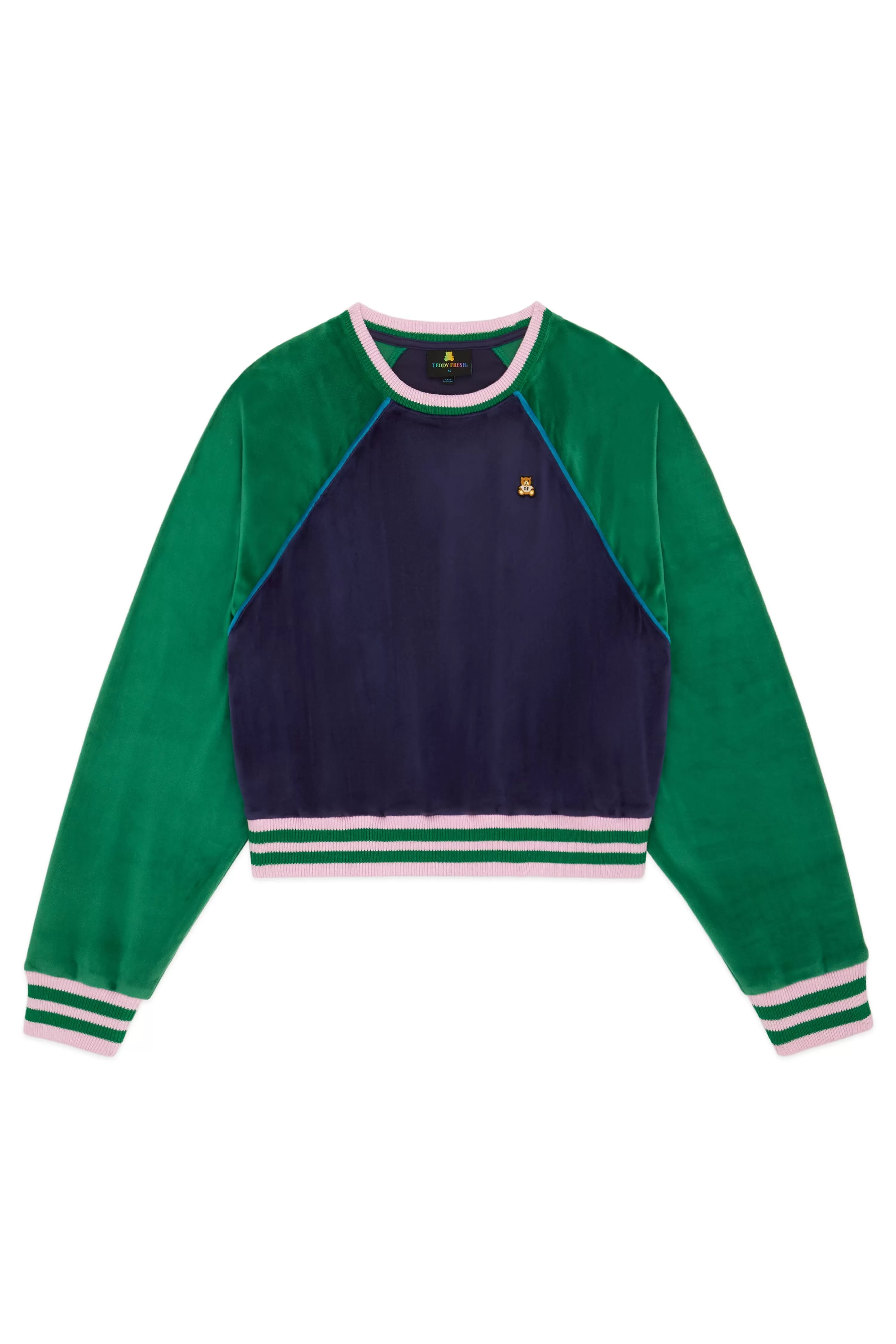 - Ribbed neckband, cuffs, and waistband with contrast stripes