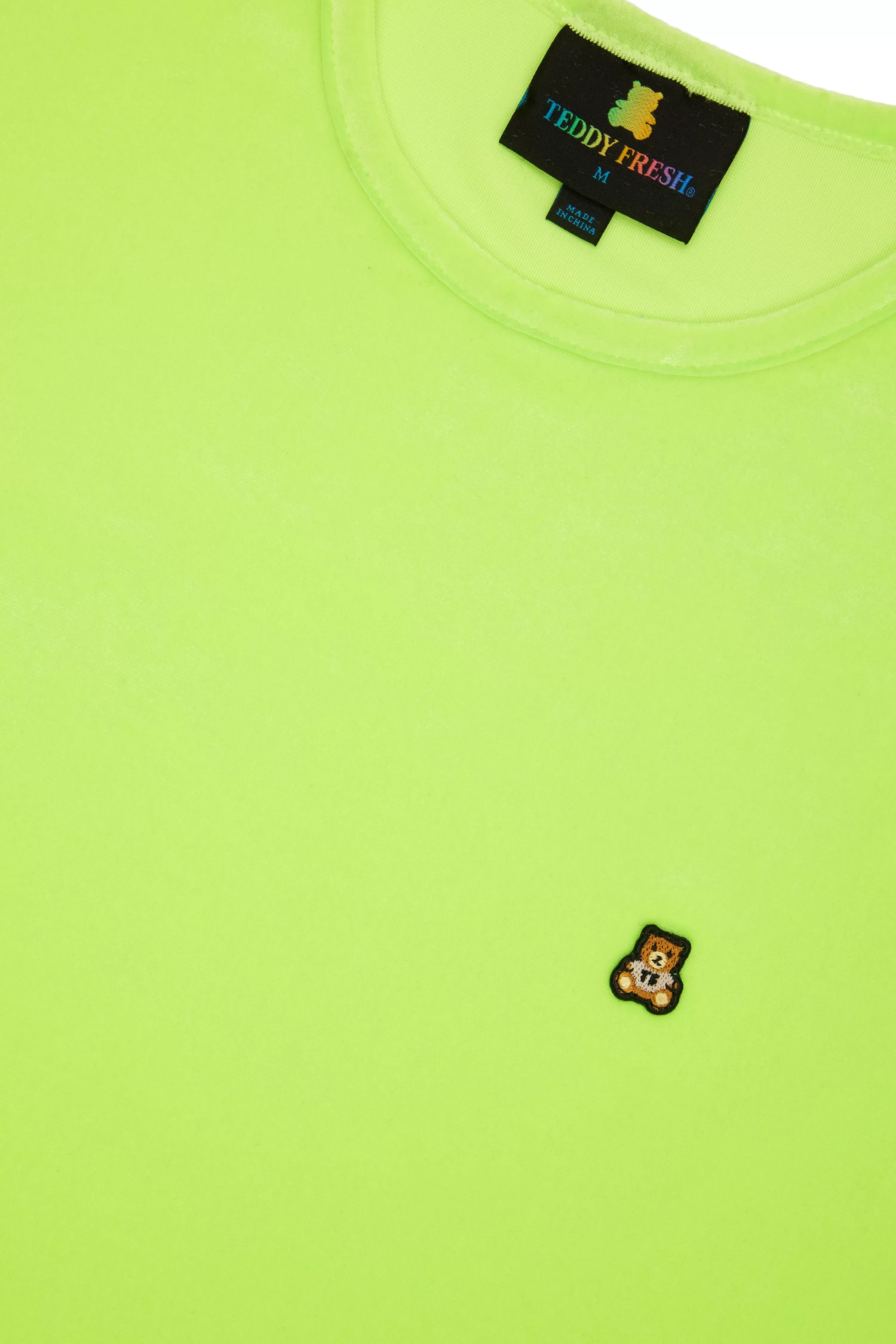 - Embroidered bear patch on chest