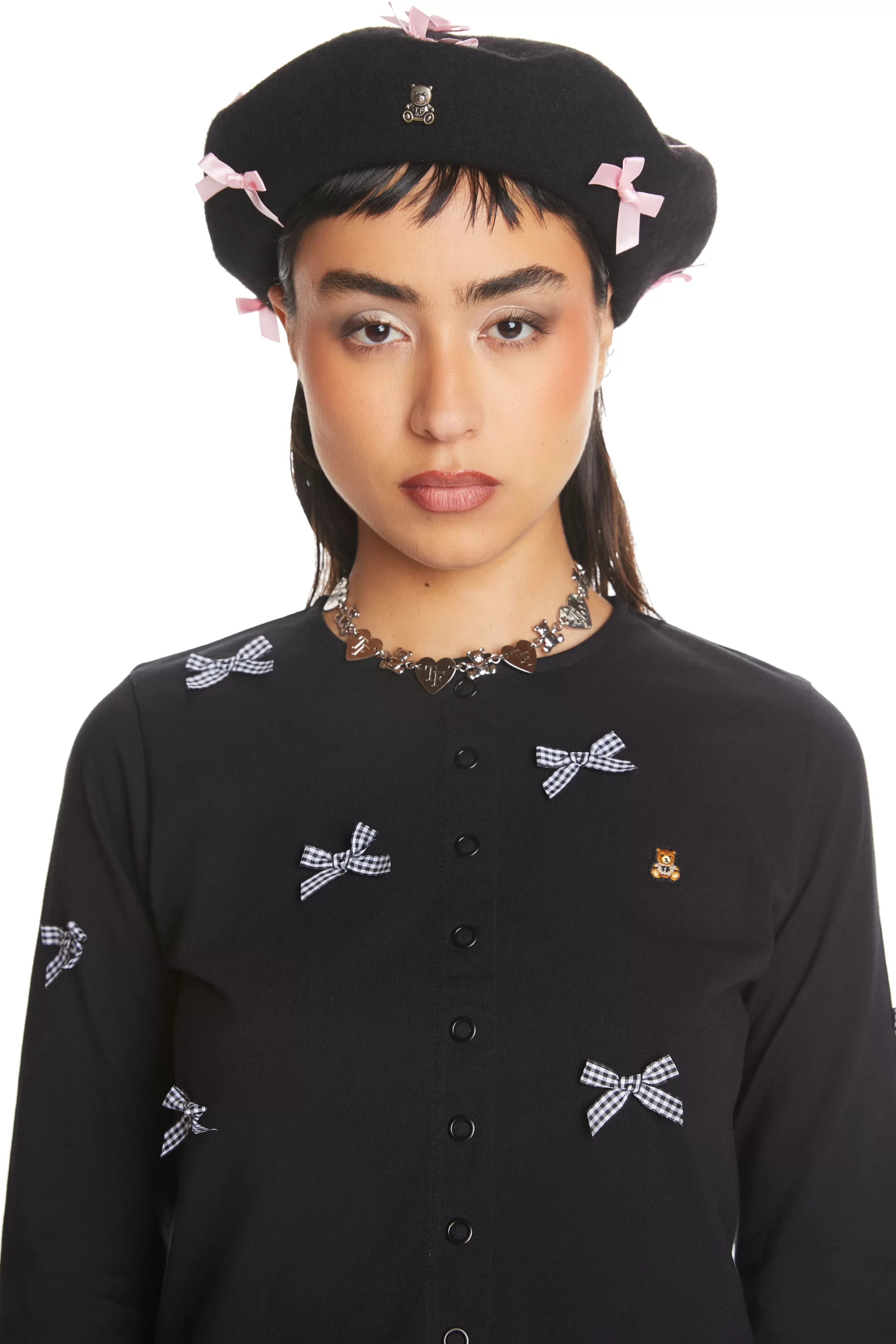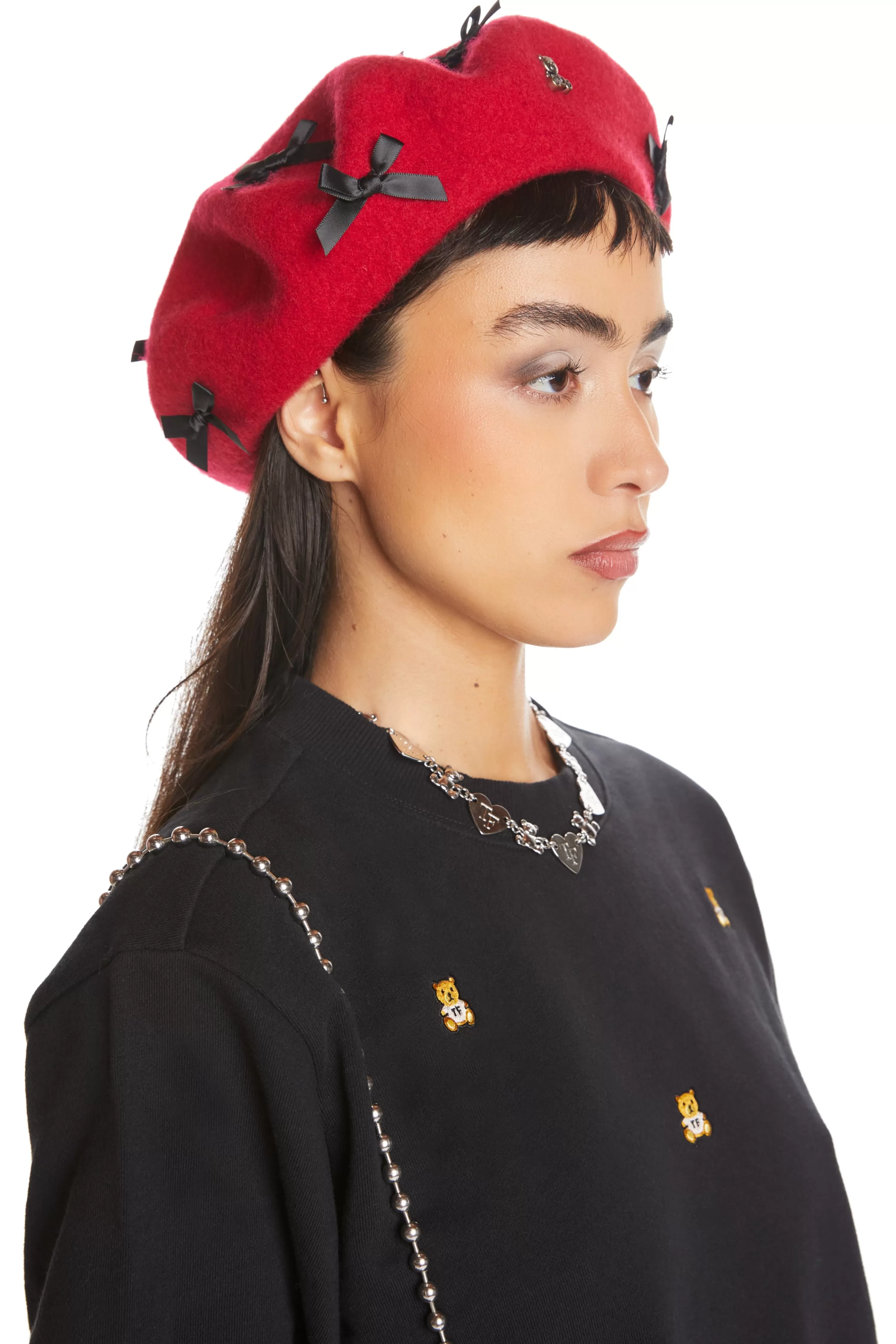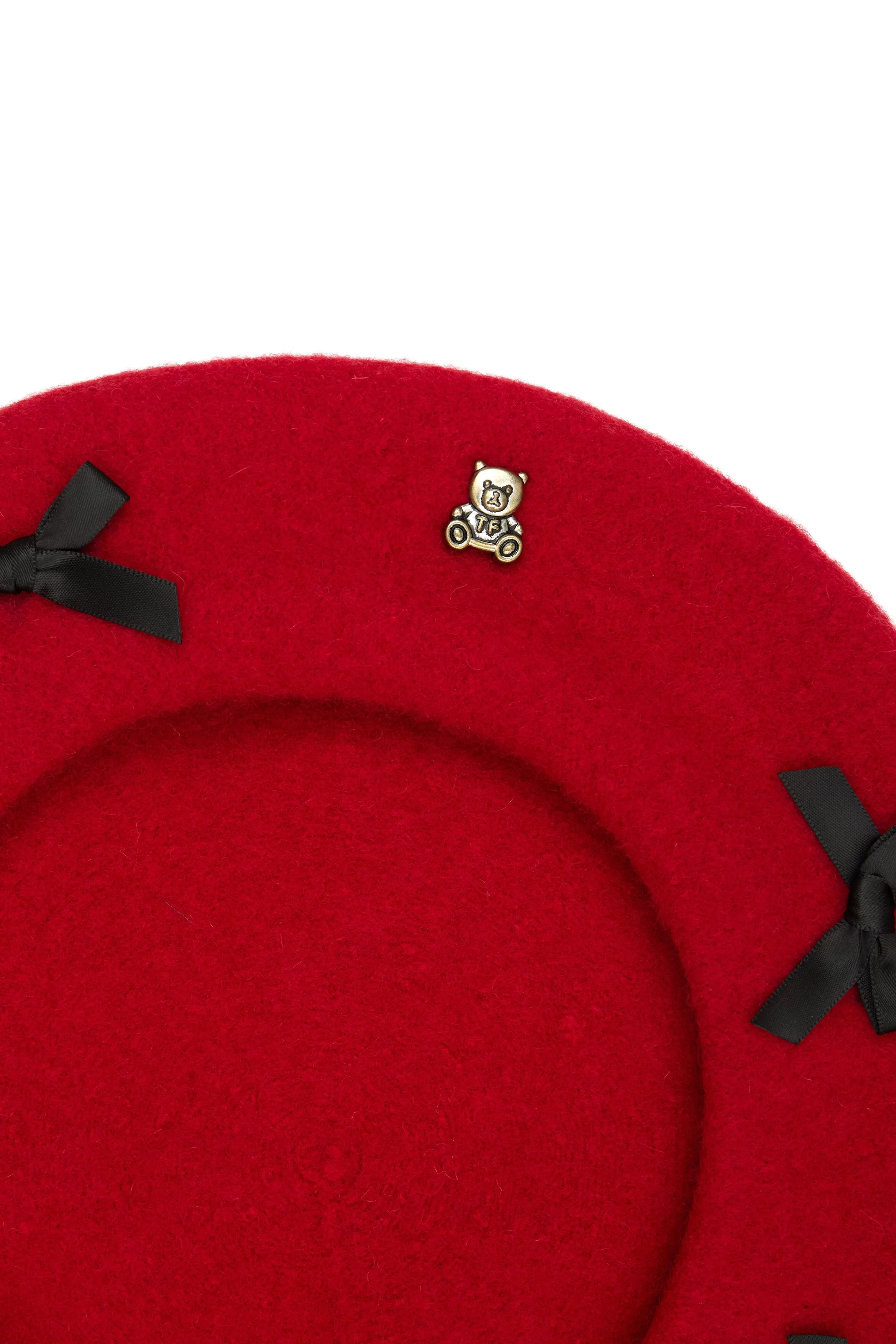 - Wool beret with satin bows all over crown and band